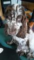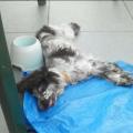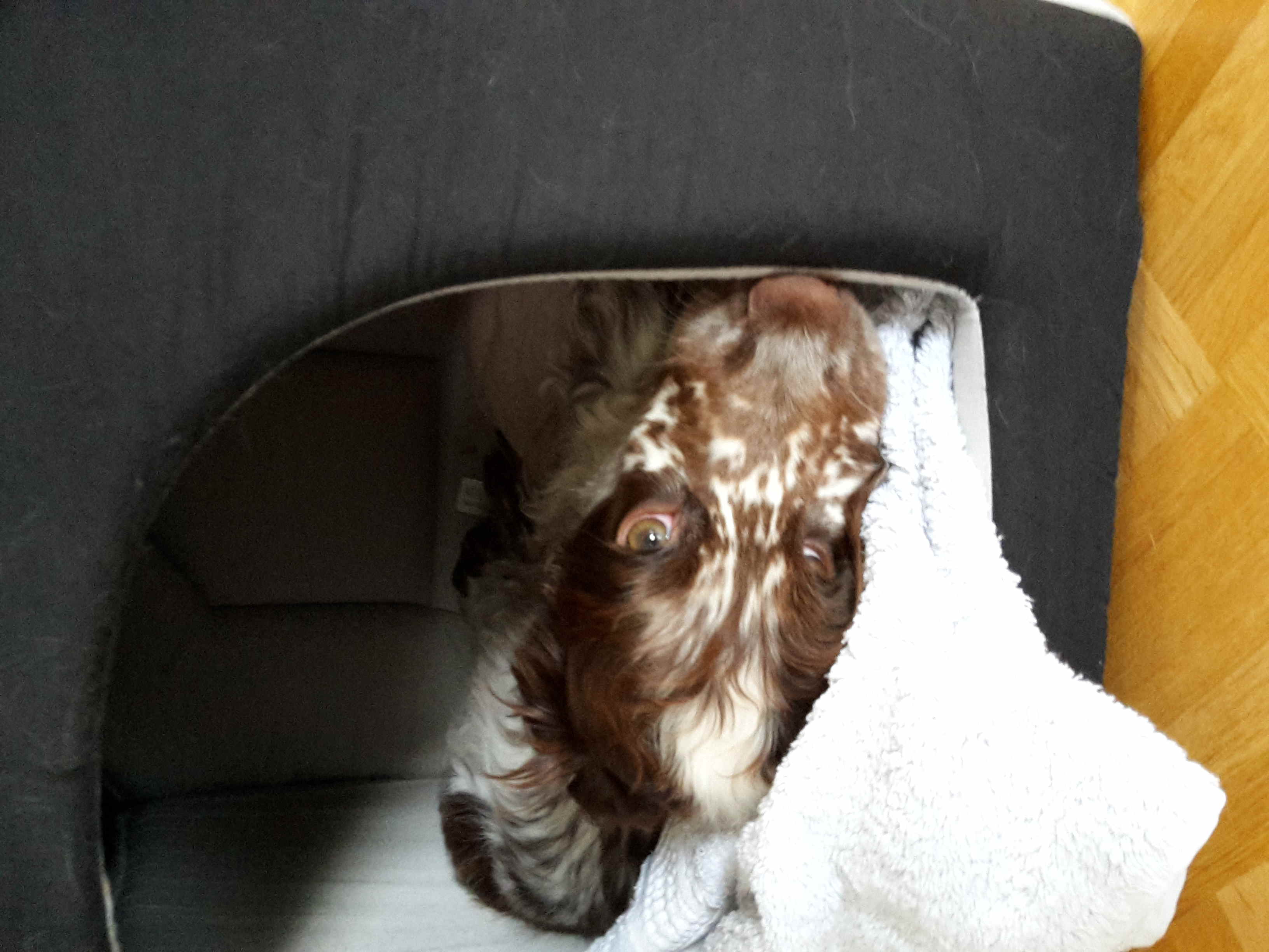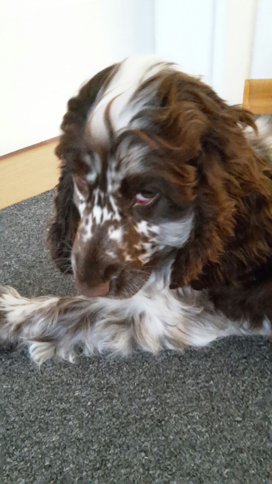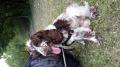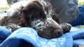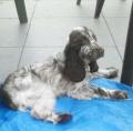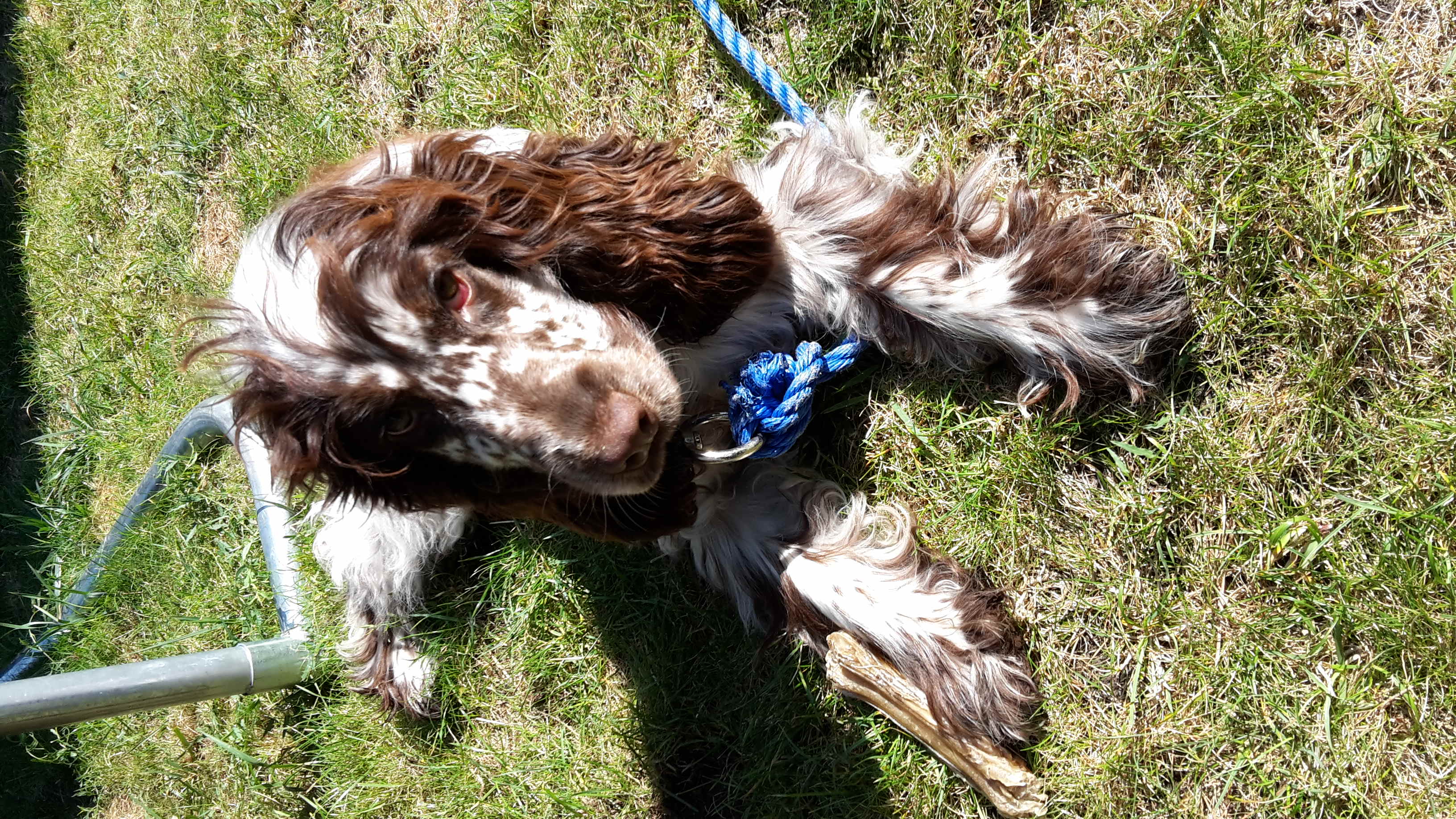Moka toujours en pleine forme fait de belles peromenades avec ses maitres, malgrès la chaleur Moka reste dehors étendue sur la bache....