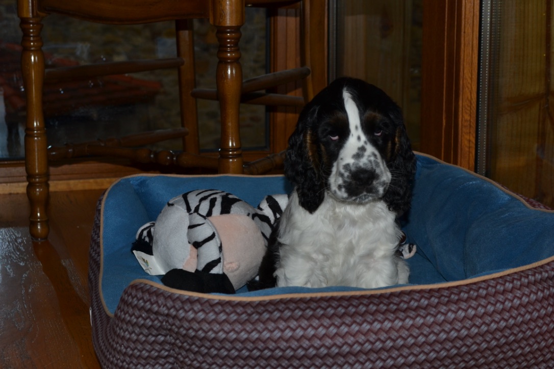 Ci joint quelques photos de Noukie qui c'est parfaitement intégrée dans sa nouvelle maison. Elle adore profiter des espaces verts et ne manque pas de jouer avec son ami le lapin. A l'intérieur, elle a pris possession des ses coussins et jouets....