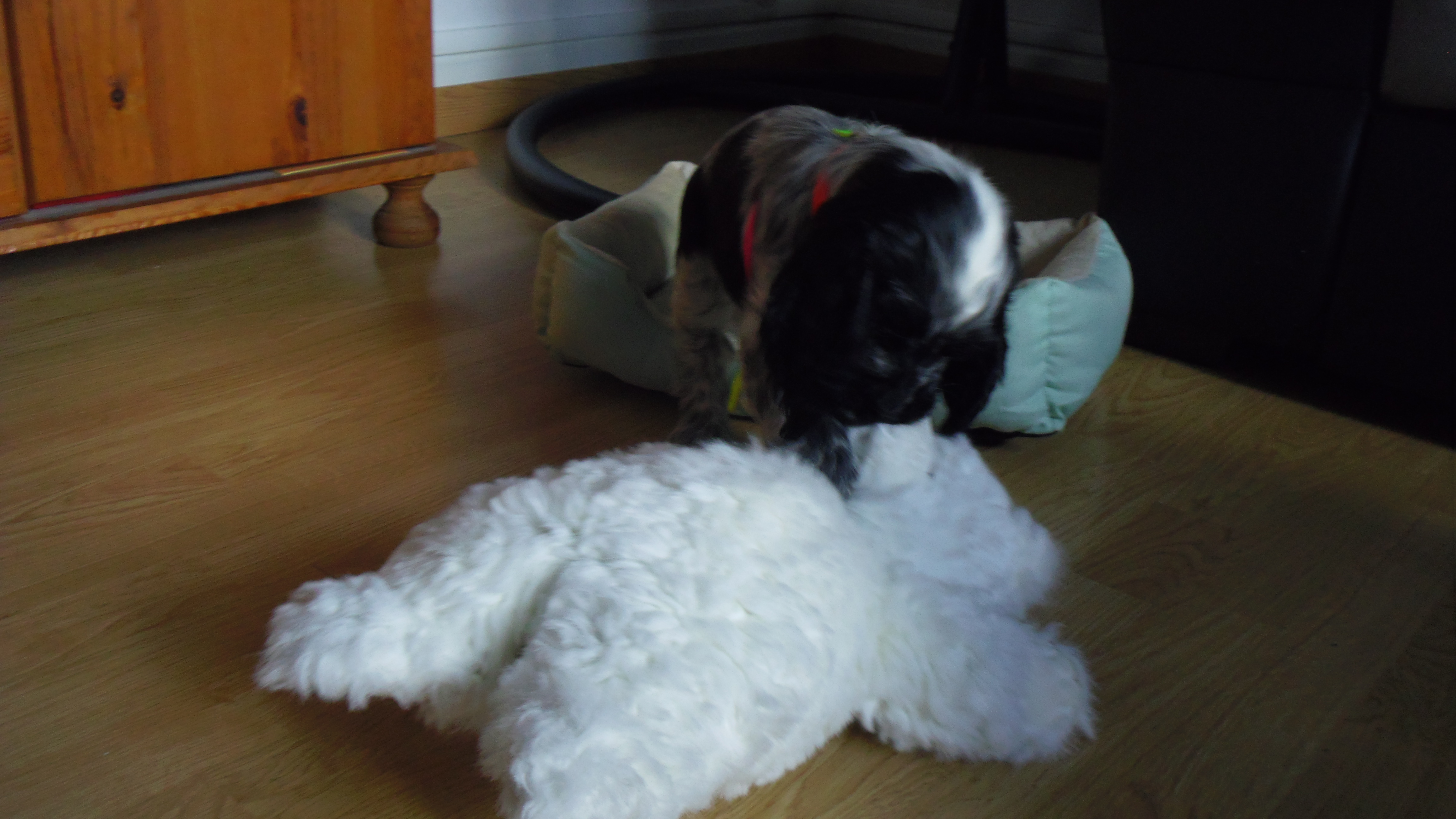 Nitnutz joue beaucoup avec sa petite maitresse Capucine, lorsqu'on lui lance un jouet, elle le rapporte à chaque fois.