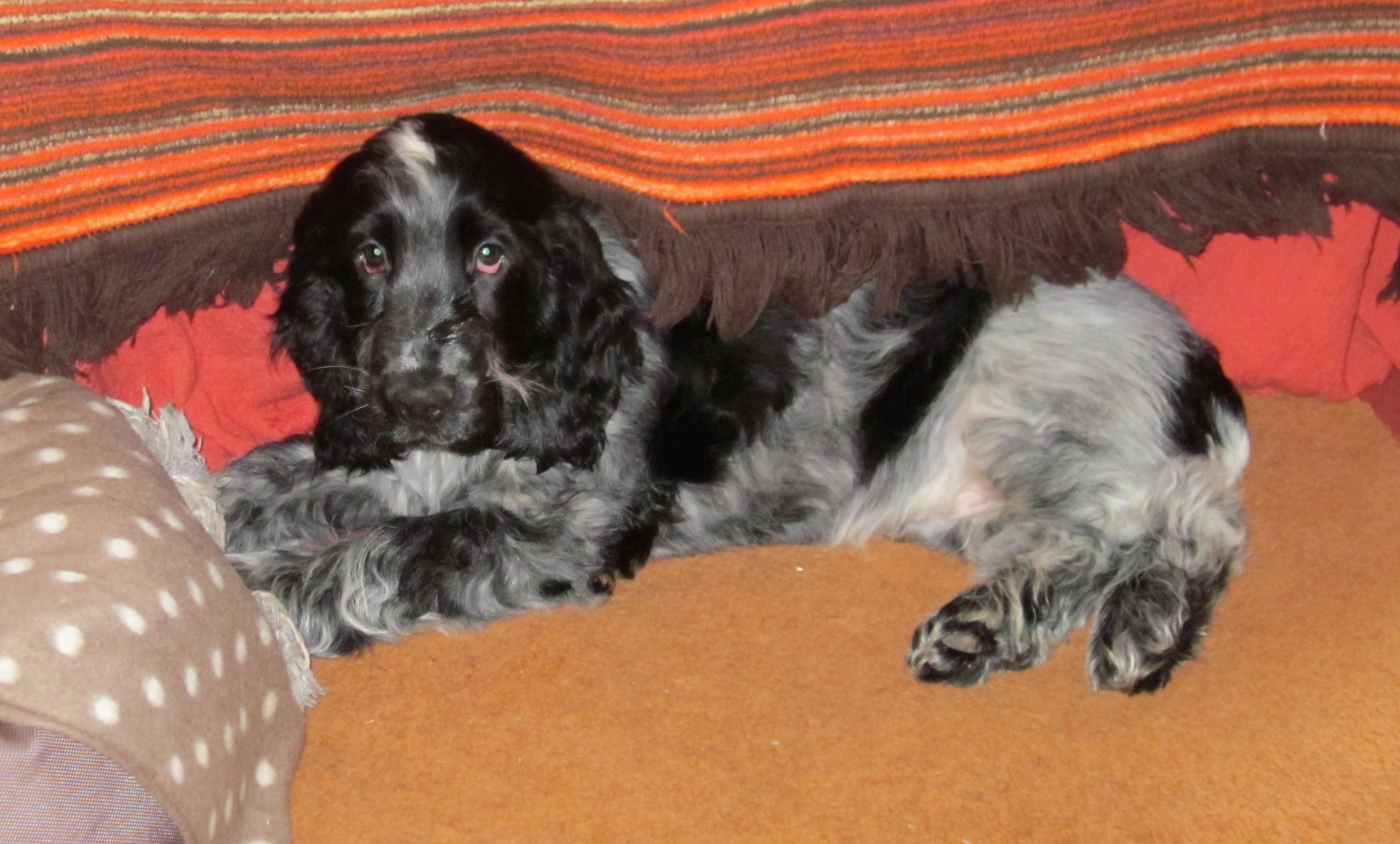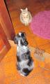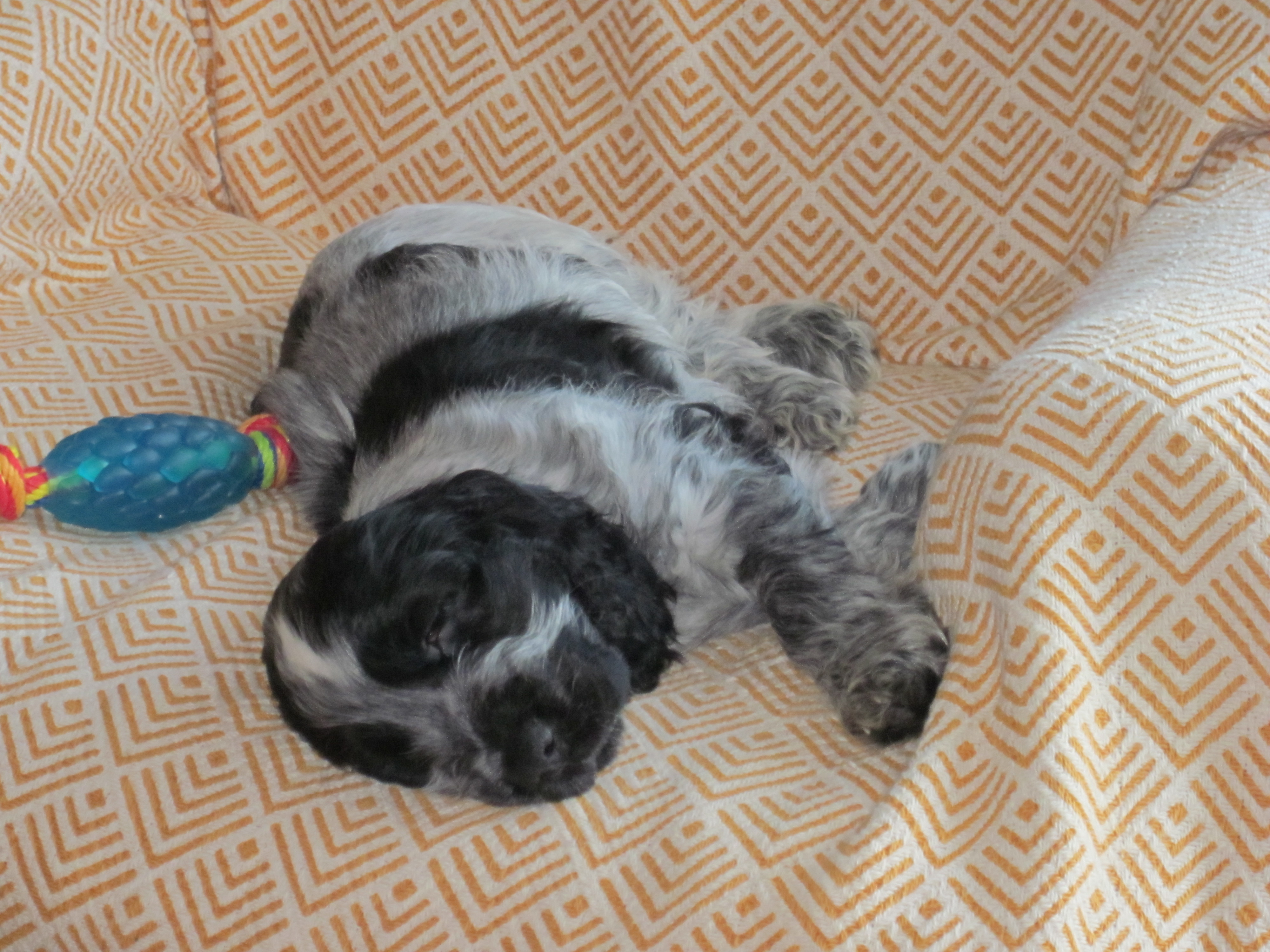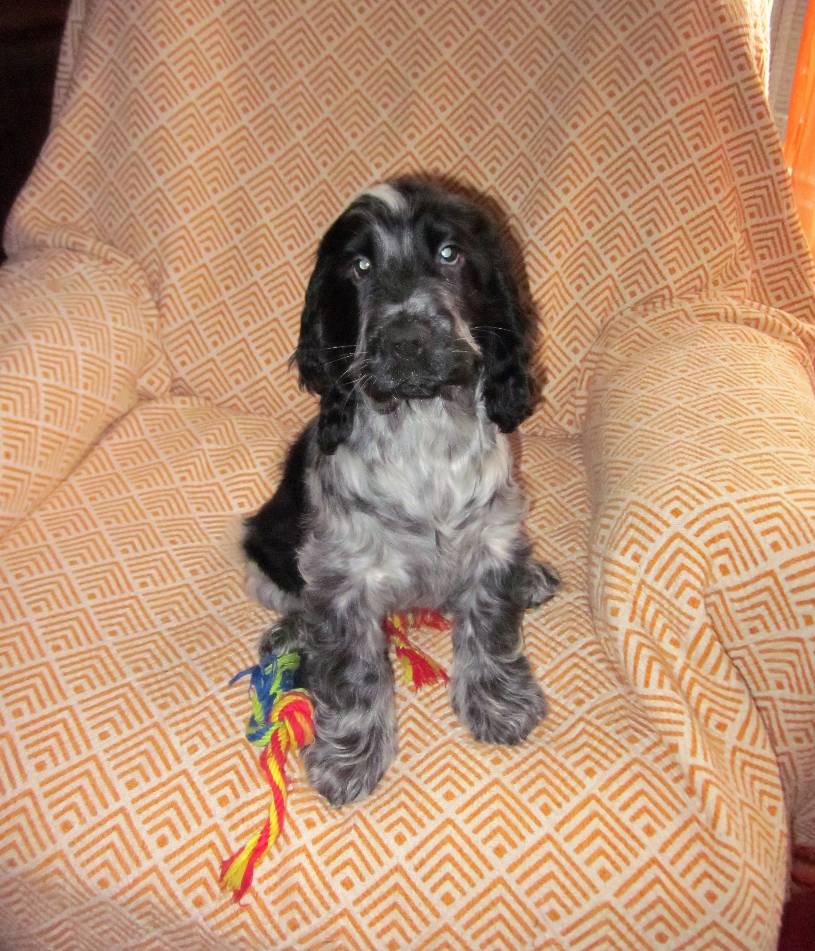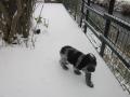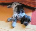 Il est obéissant, amusant et très affectueux. Il est tranquille la nuit qu'il passe dans la cuisine. Il urine encore sur le journal tandis que ses gros besoins il essaie de les laisser à l'extérieur.