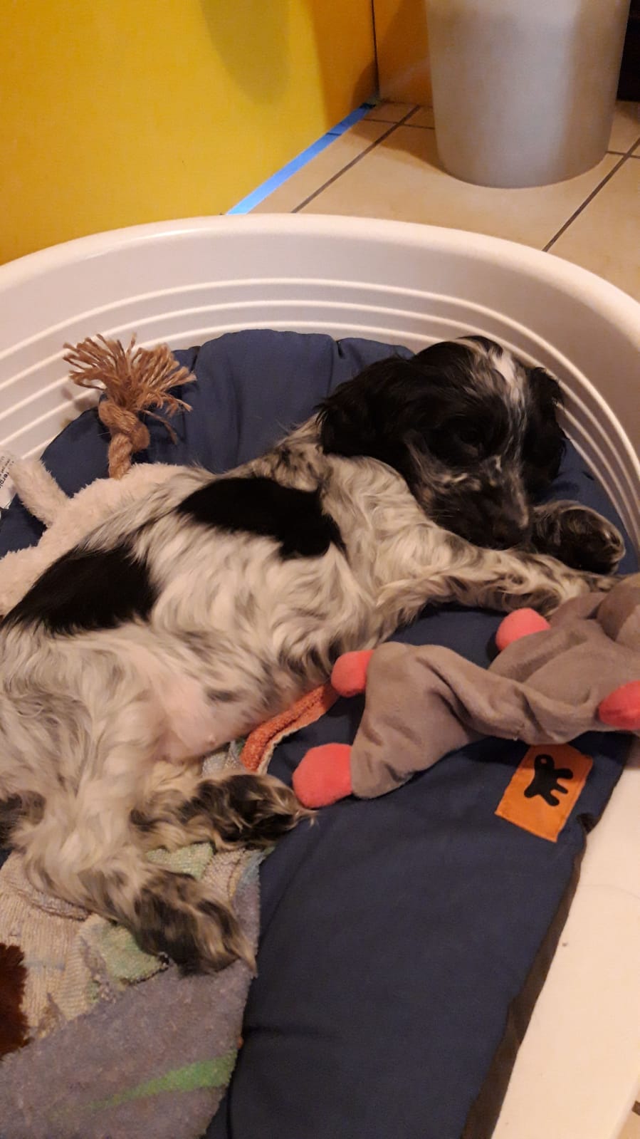 Je commence à bien réagir à mon nom et là c'est l'apprentissage de la propreté..... encore un peu difficile mais je suis si jeune, et pleine de bonne volonté.