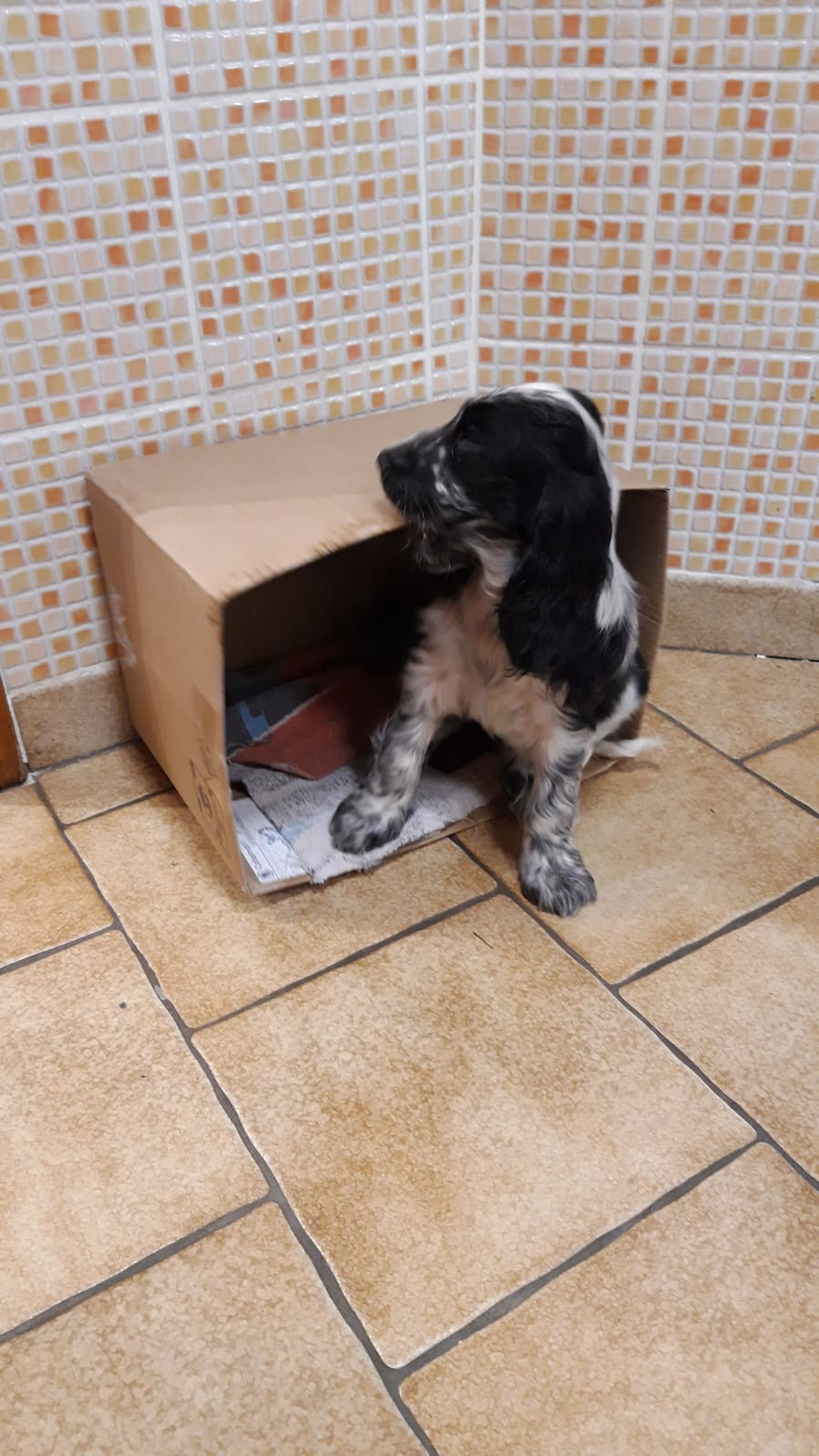 J'ai plein de jouets "pouet pouet", mais mon plus grand plaisir c'est de les mettre à l'abri dans une grande boite en carton où je peux alors m'amuser