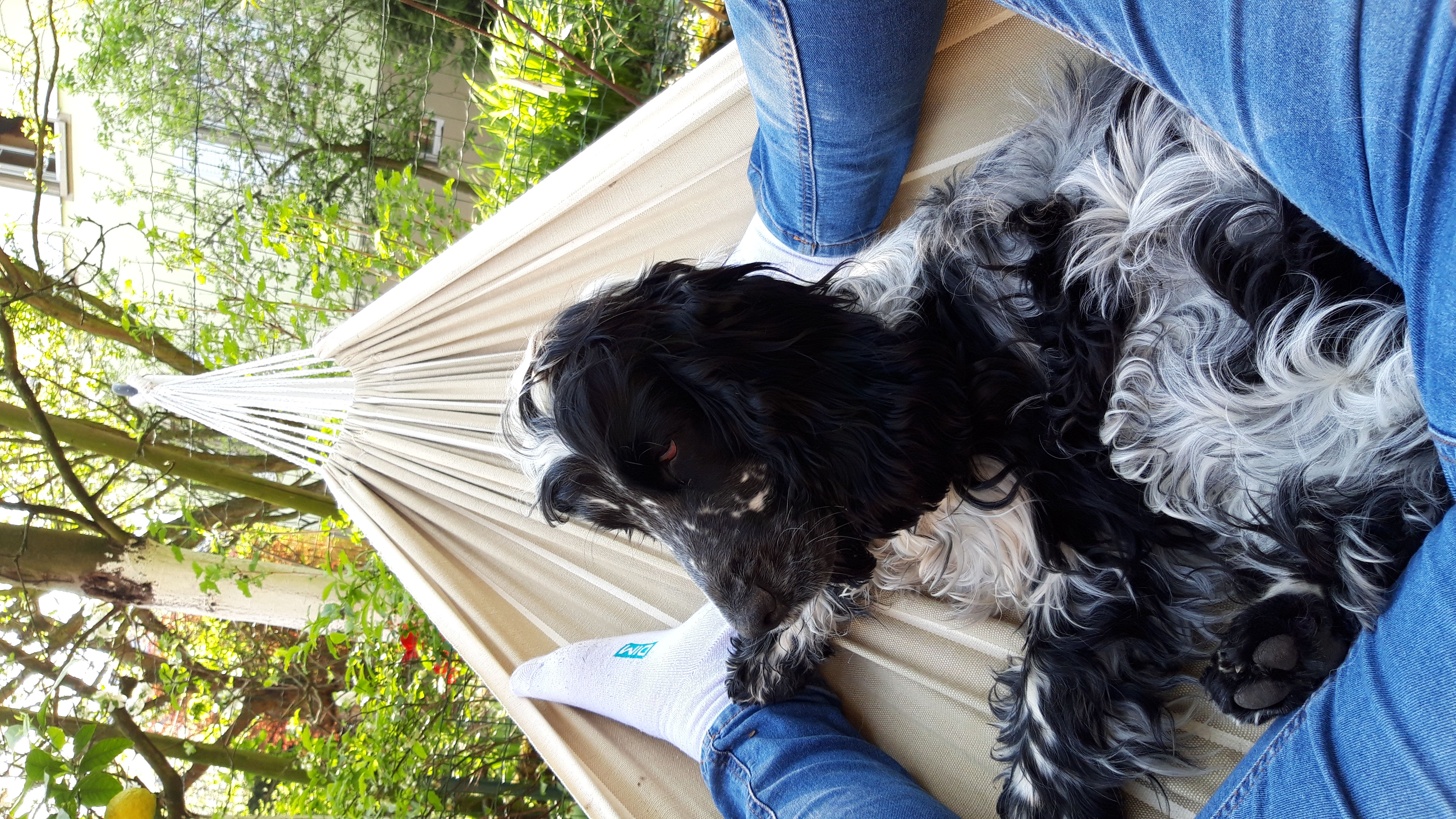 j'adoooore faire la sieste sur les jambes de mon maître ou dans le hamac avec ma maitresse.