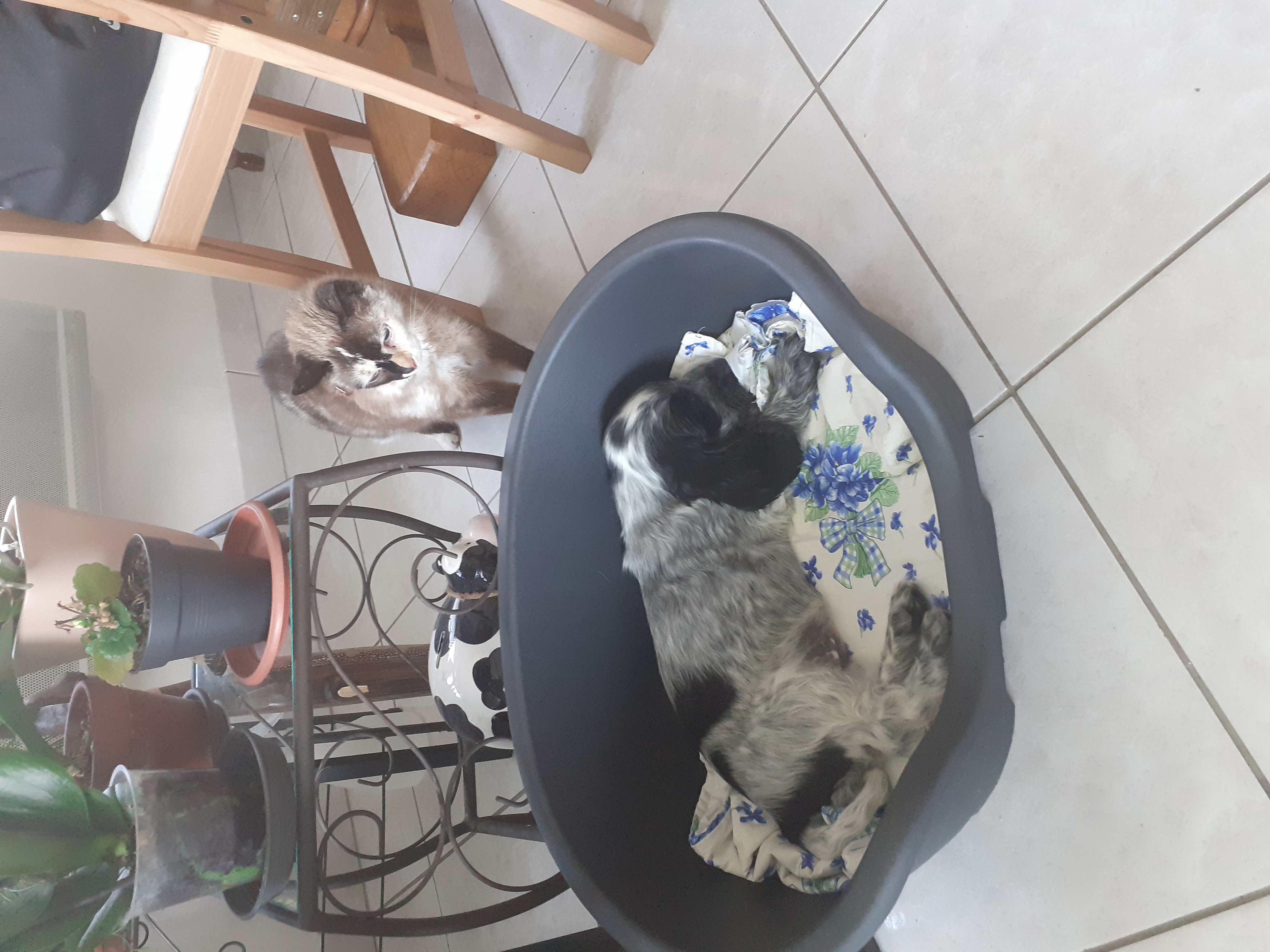Le petit Raven c'est vite habitué à son nouveau foyer et a nos deux chats