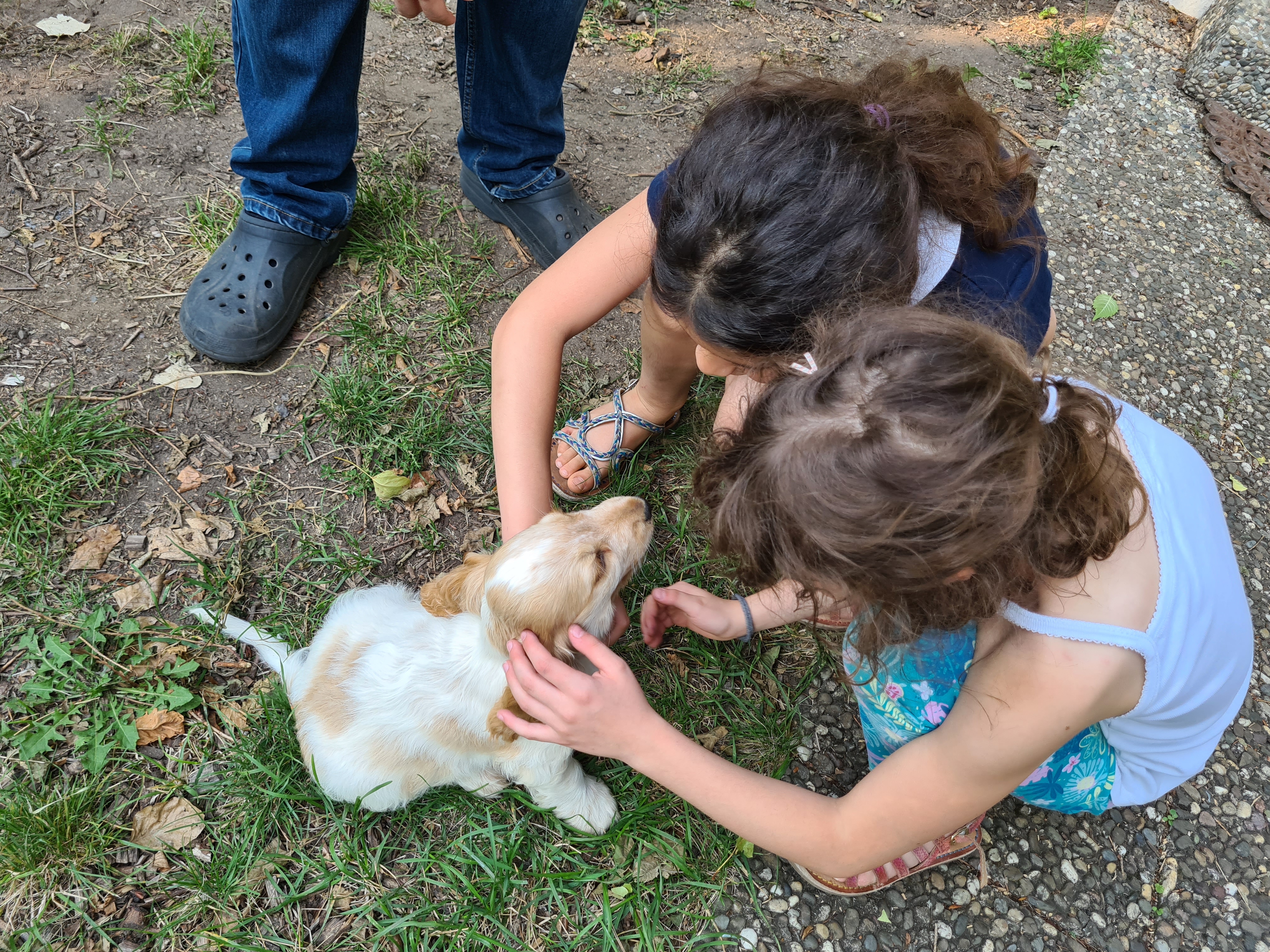 Coucou, moi c'est Rio, j'ai deux mois et je suis ma nouvelle maman comme son ombre ! La nuit, elle se relaie avec Daddy, ils me réveillent deux fois, pour m'apprendre la propreté qu'ils disent ! Pipi-dans-le-jardin ! J'aime bien dormir moi ! J'ai essayé de croquer les pieds des grands mais ouhlala ça ne leur a pas plus du tout ! Du coup, j'ose plus le refaire mais ceux des p'tites choupettes de la maison miam miam ! Moi je dois apprendre la propreté et elles la fermeté... à suivre !