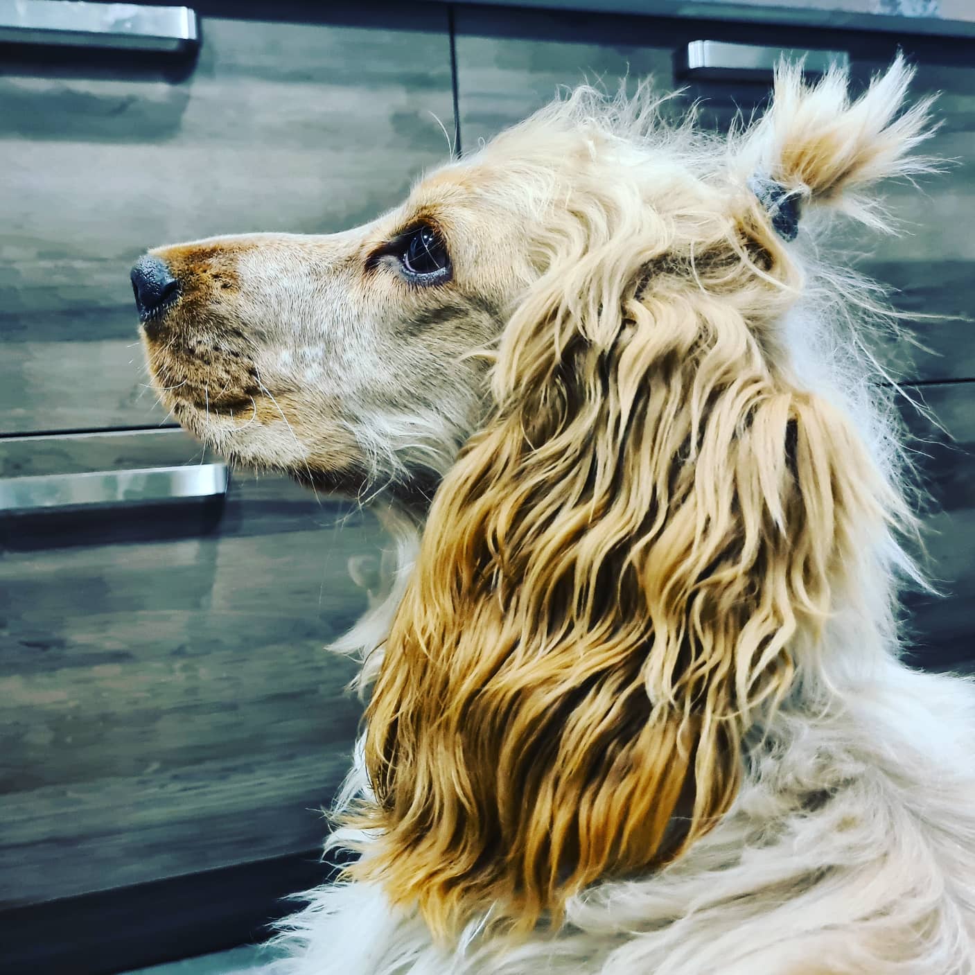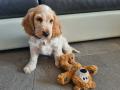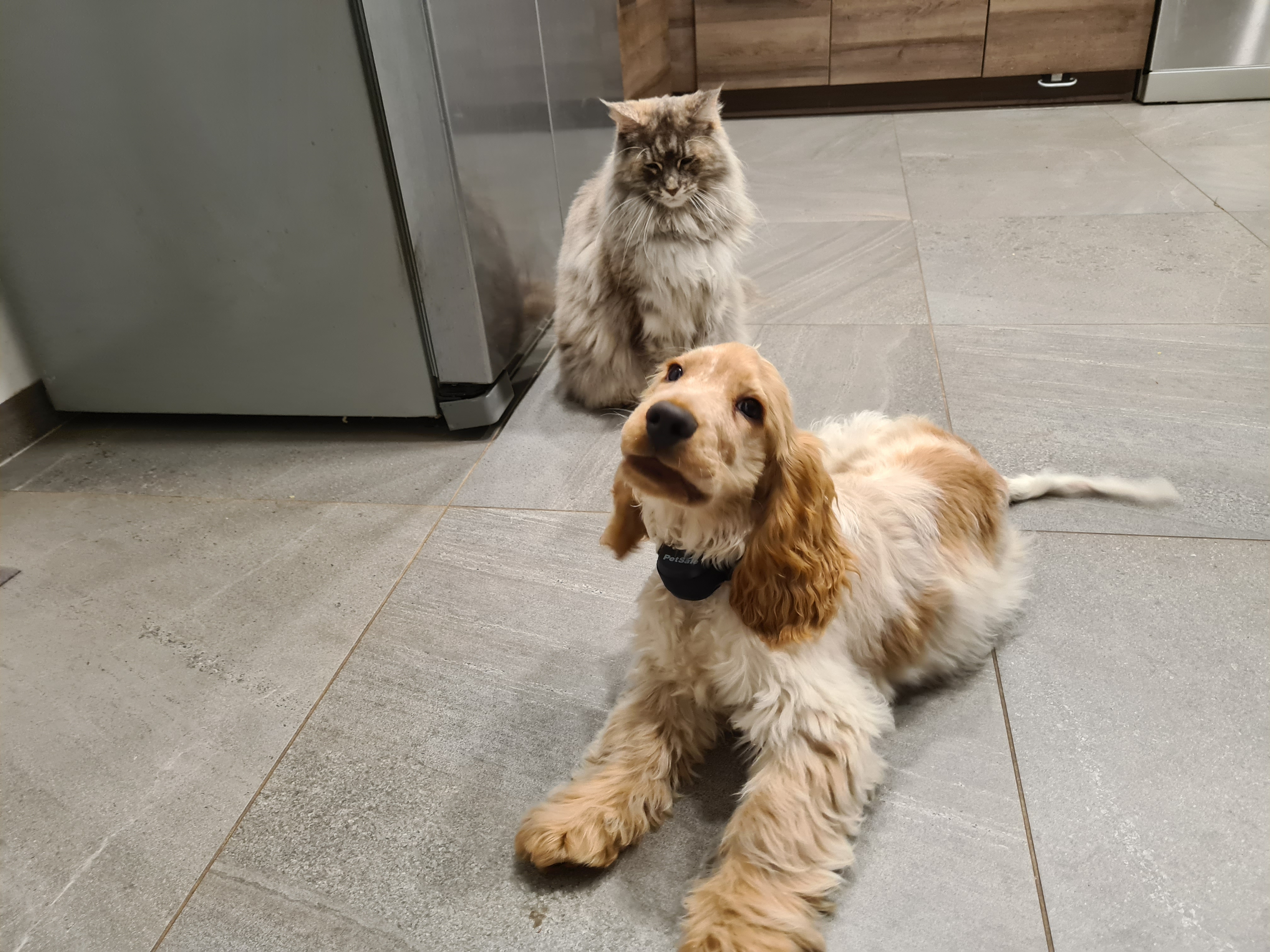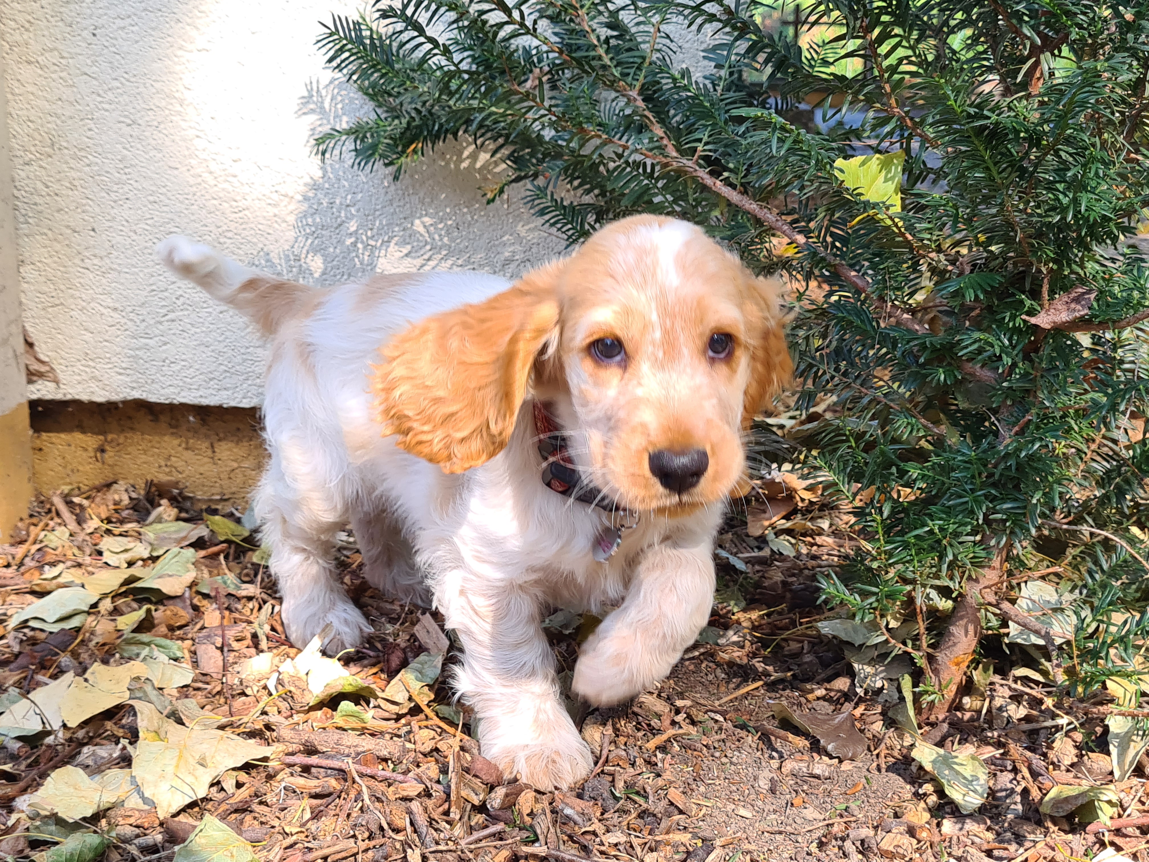 J'ai bientôt à présent 8 mois ! Propre nuit et jour depuis mes cinq mois. J'ai bien avancé dans mon éducation : assis, couché, reste, au pied. Lorsqu'il pleut, après le jardin ou une promenade, je sais que je dois poser mes pâtes sur le tapis absorbant ! Bizarrement je reviens plus vite quand j'entends "tiens" que "viens" ! Gourmand, moi ? J'aime être brossé mais surtout ce que j'adore c'est les caresses et jouer. J'adore les enfants mais je dois apprendre à canaliser mon énergie. Enfin bref, tout va bien pour moi :-) !