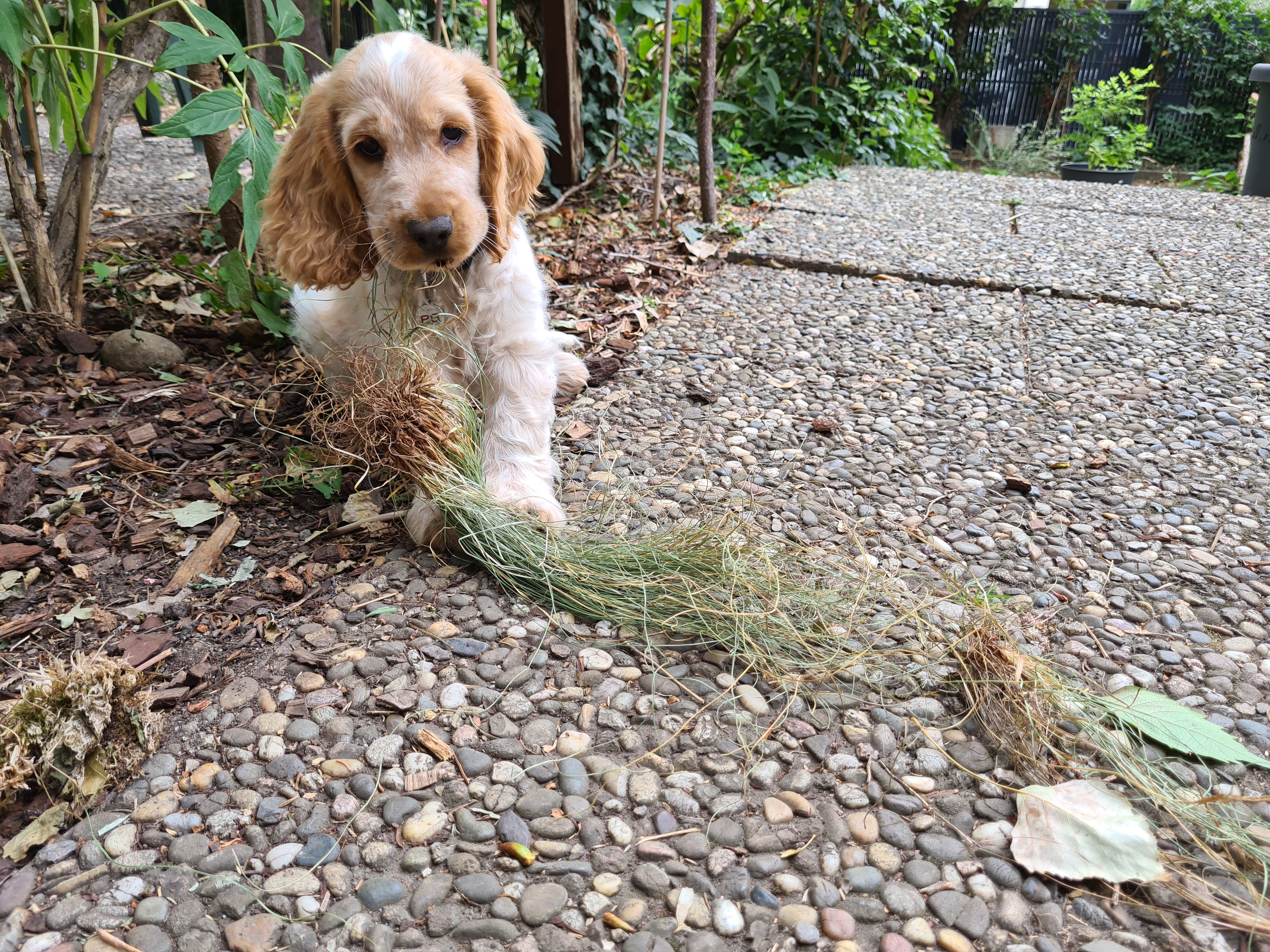 Deux semaines presque que Rio est à la maison et une plante dans le jardin en moins, elle ne devait pas lui plaire...