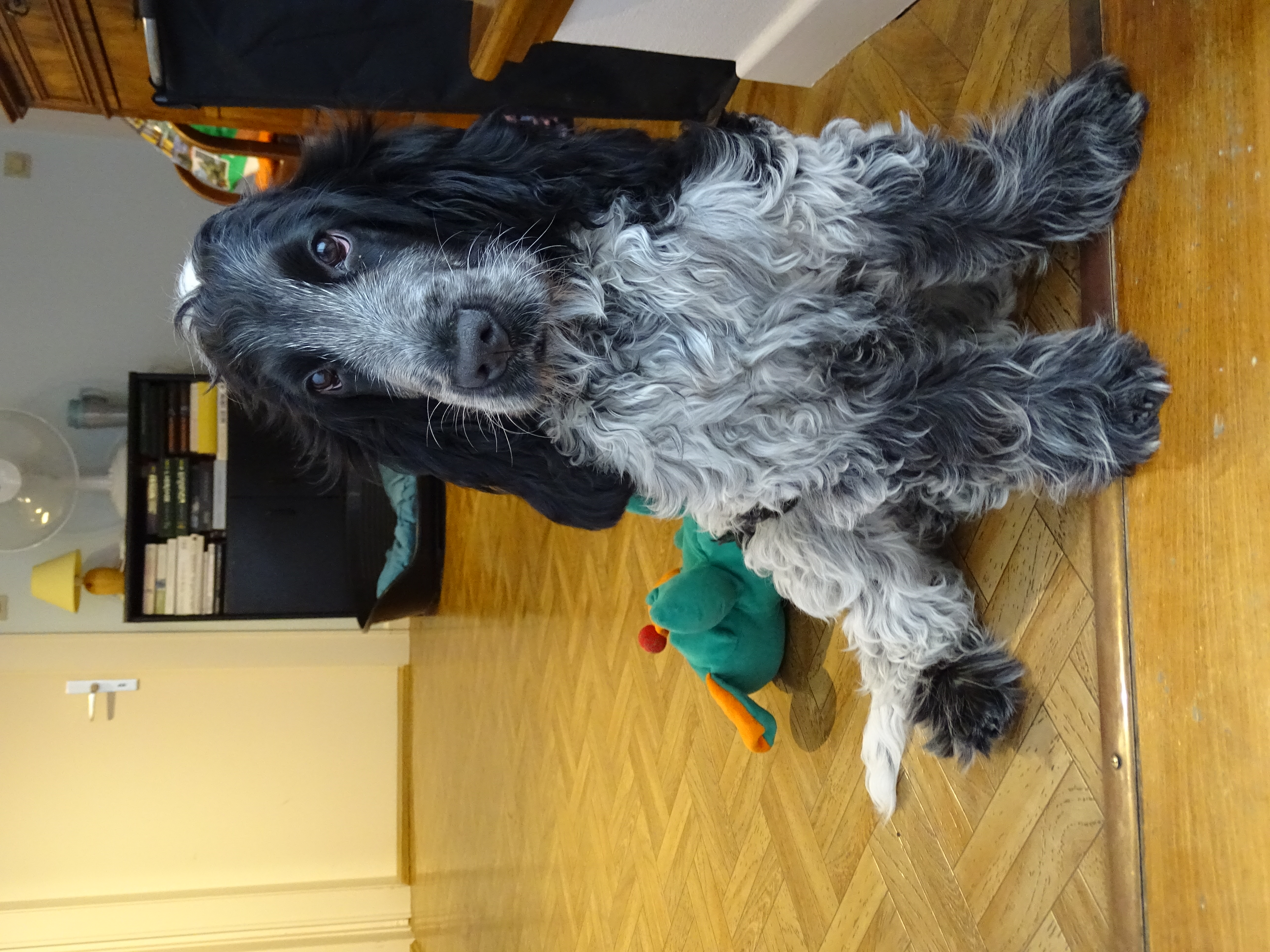SULY a 5 mois, j'ai beaucoup grandi, je suis propre (sauf quelques accidents) et toujours aussi joueur (j'aime mordiller...). Je suis en train de renouveller mes dents.