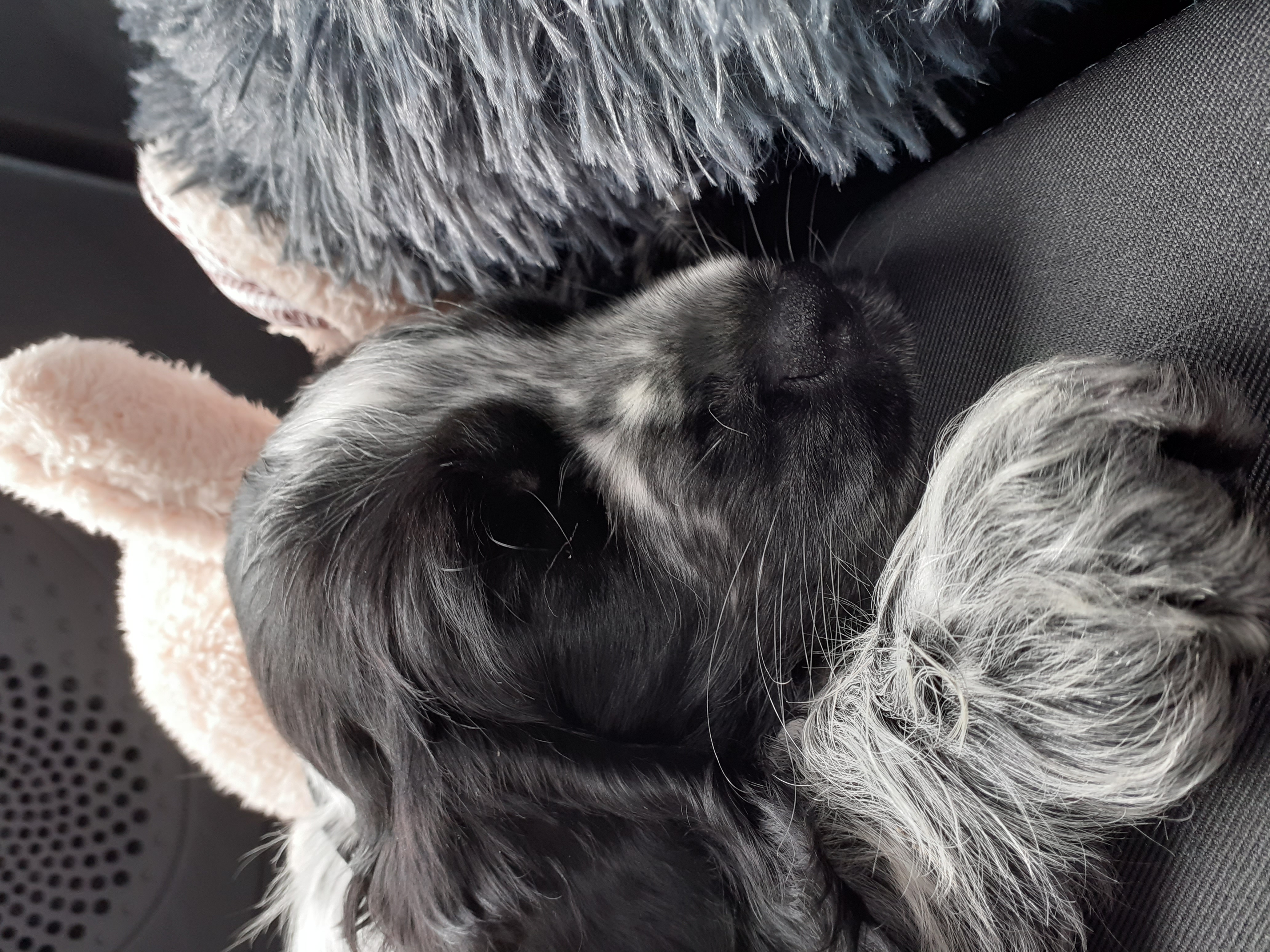 En bon cocker qui se respecte, il veut déjà grimper sur le canapé, manger mes chaussures et diriger lui-même les promenades. Il n'hésite pas à me faire ses yeux de cocker pour tenter d'arriver à ses fins... Affaire à suivre (pour le moment, je tiens bon) !