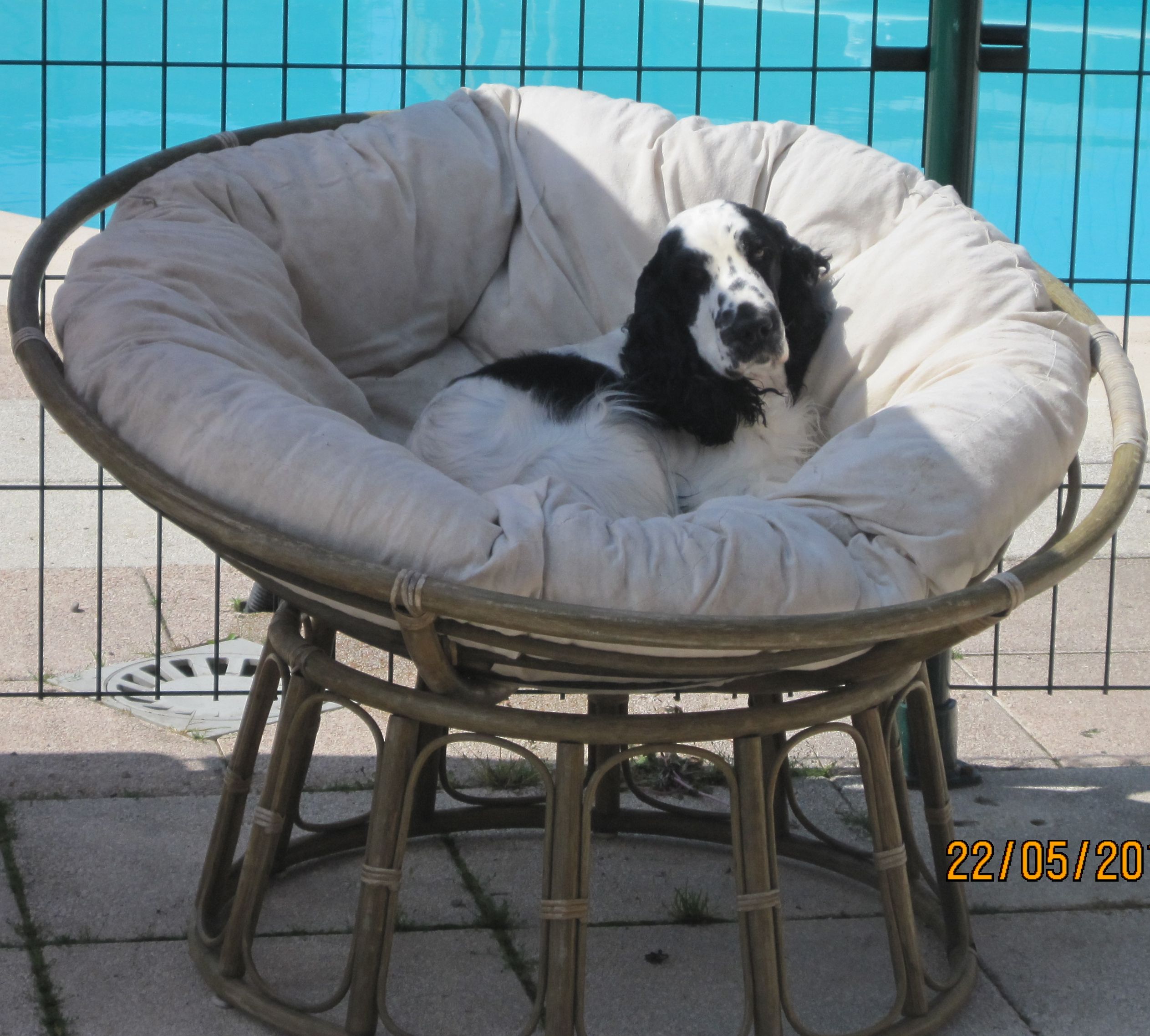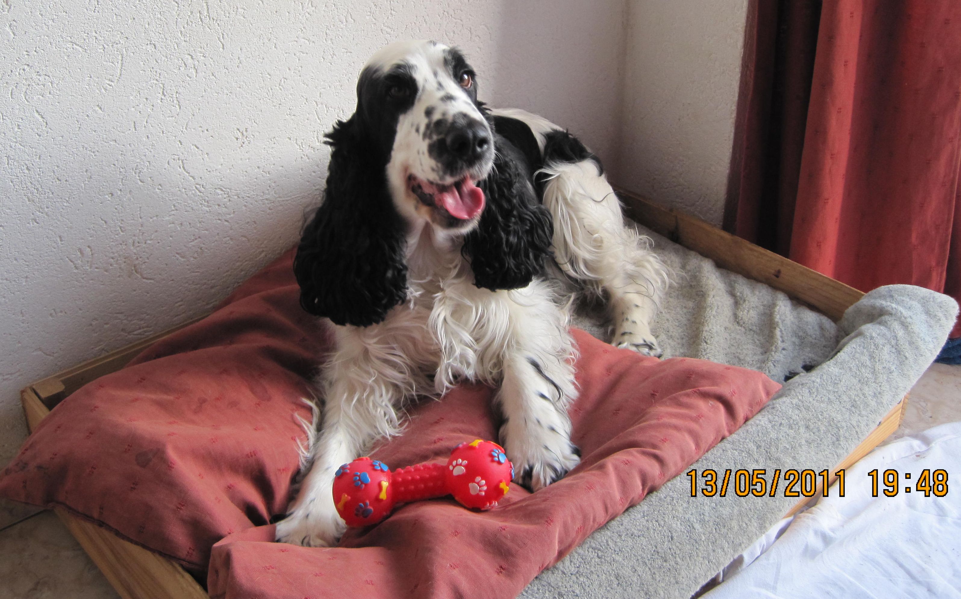 Je suis de nature craintive mais je me soigne et l’amour de mes maîtres me comble de bonheur que je leur rend bien car ils étaient très malheureux d’avoir perdu Pinocchio, le cocker de la maison avant mon arrivée.