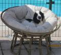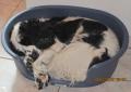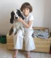 Je suis une femelle blanche et noire, fille de Venus et de Pyrite et je suis très fière de mes belles oreilles qui prolongent le noir autour de mes yeux. Lorsque je cours et qu’elles se mettent à l’horizontal, elles me donnent un air de Zorro !!