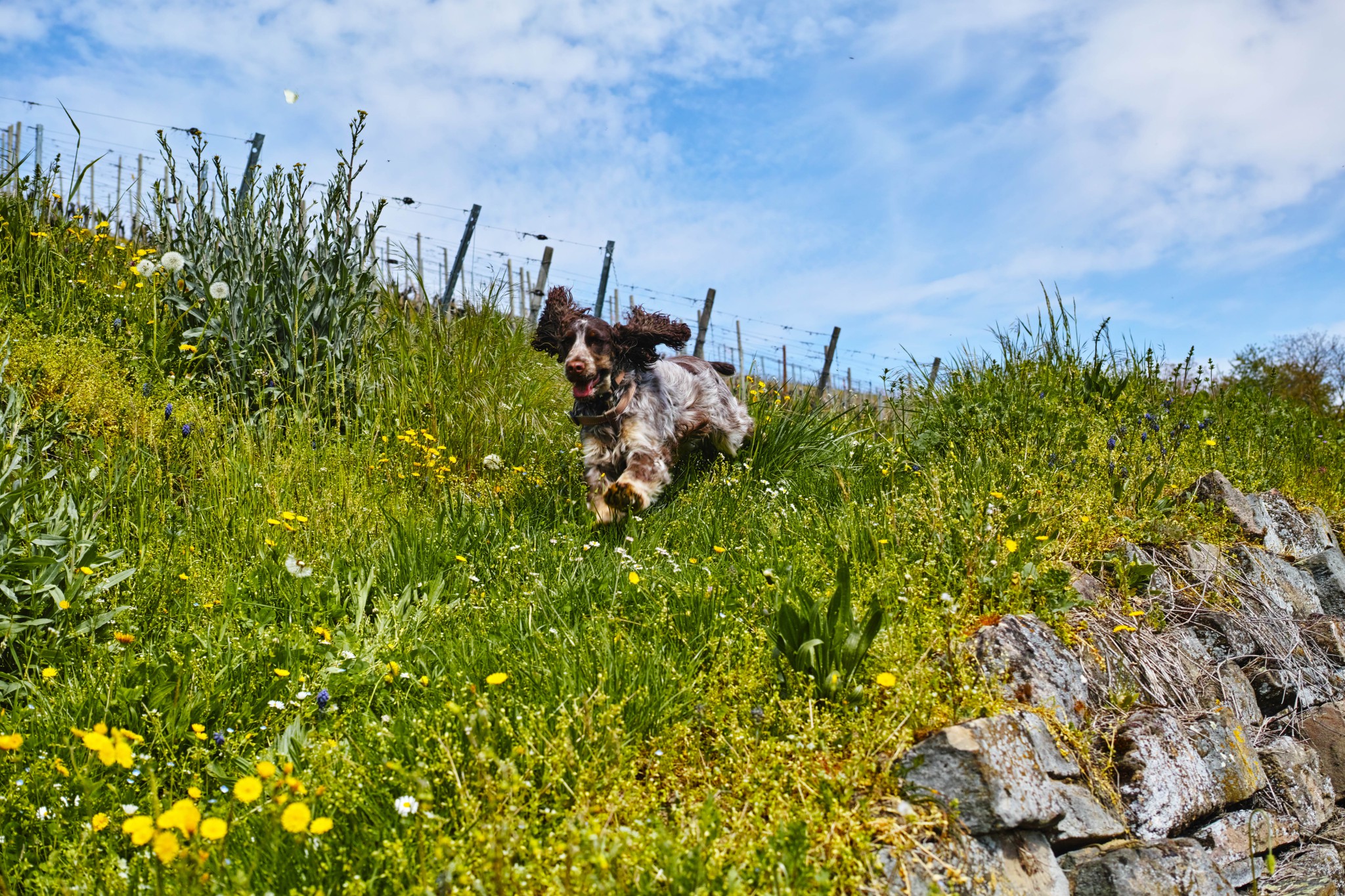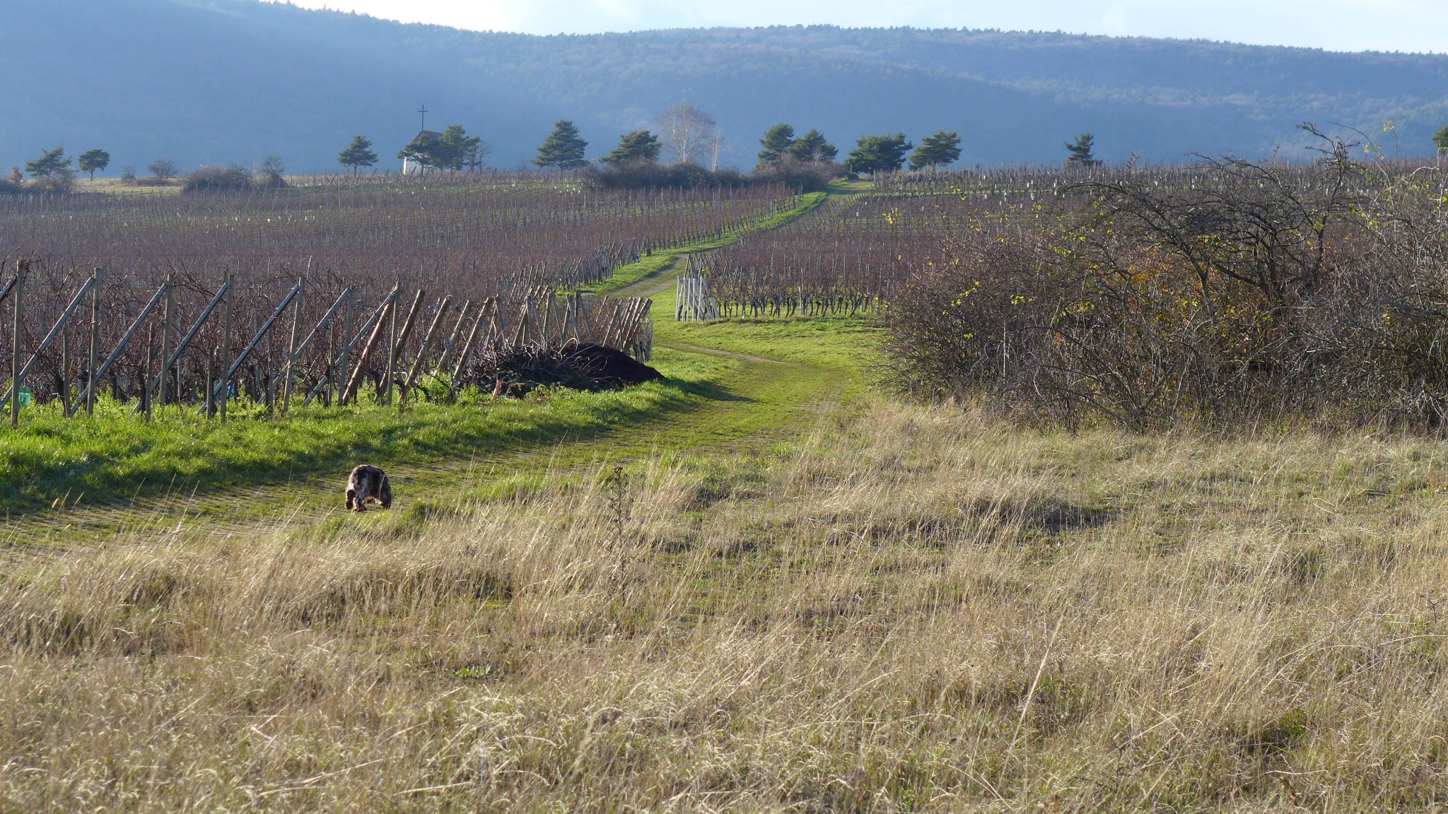 Comme on le voit sur l'une des photos, j'aime me promener dans le vignoble, et lorsque les raisins sont mûrs, je les mange directos sur le pied, c'est meilleur ! Quand les vendanges sont faites, je cherche toujours ces douces petites baies, mais elles n'y sont plus, je n'y comprends rien, il me faut attendre la prochaine fin d'été me disent mes maîtres !