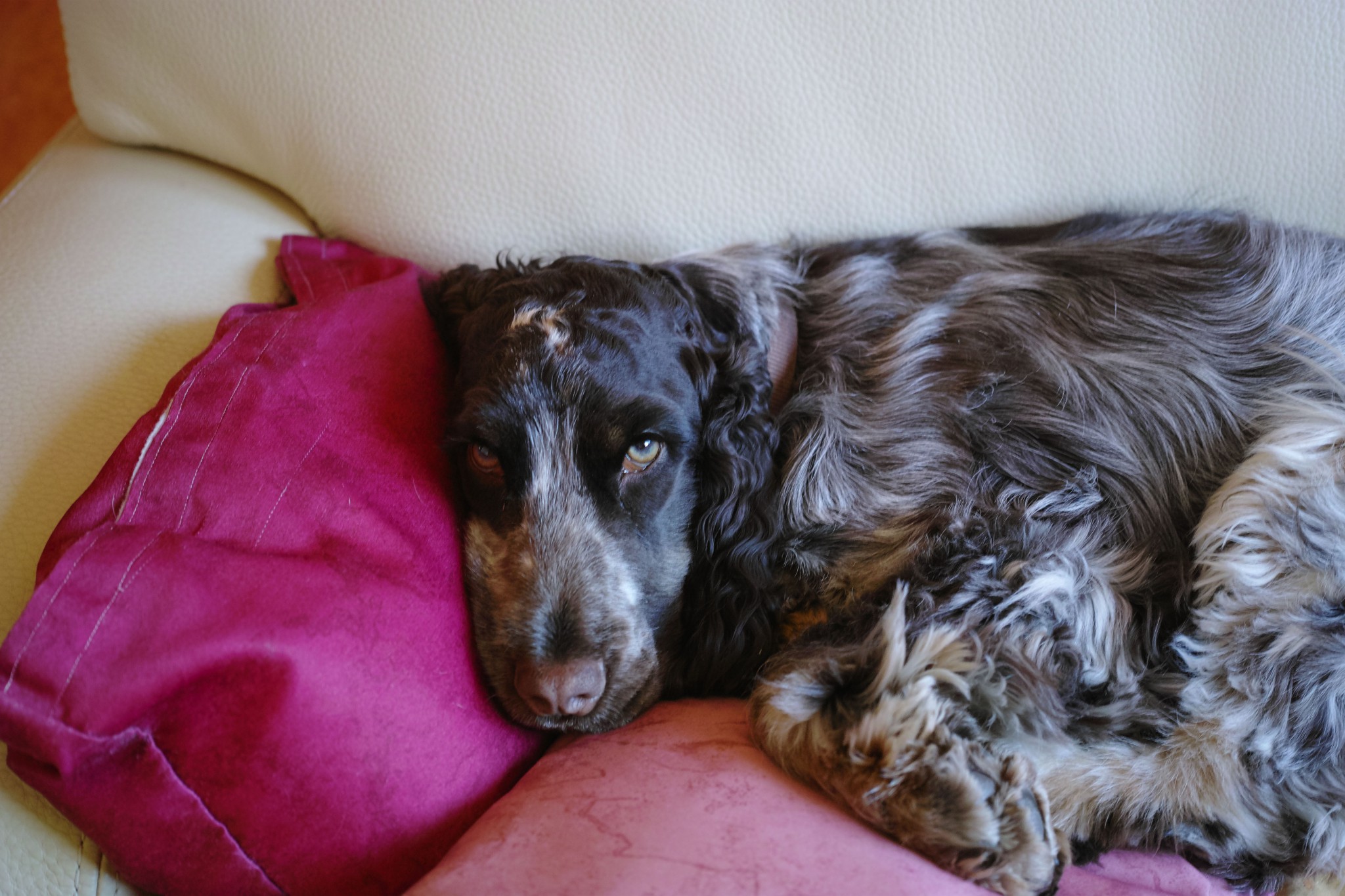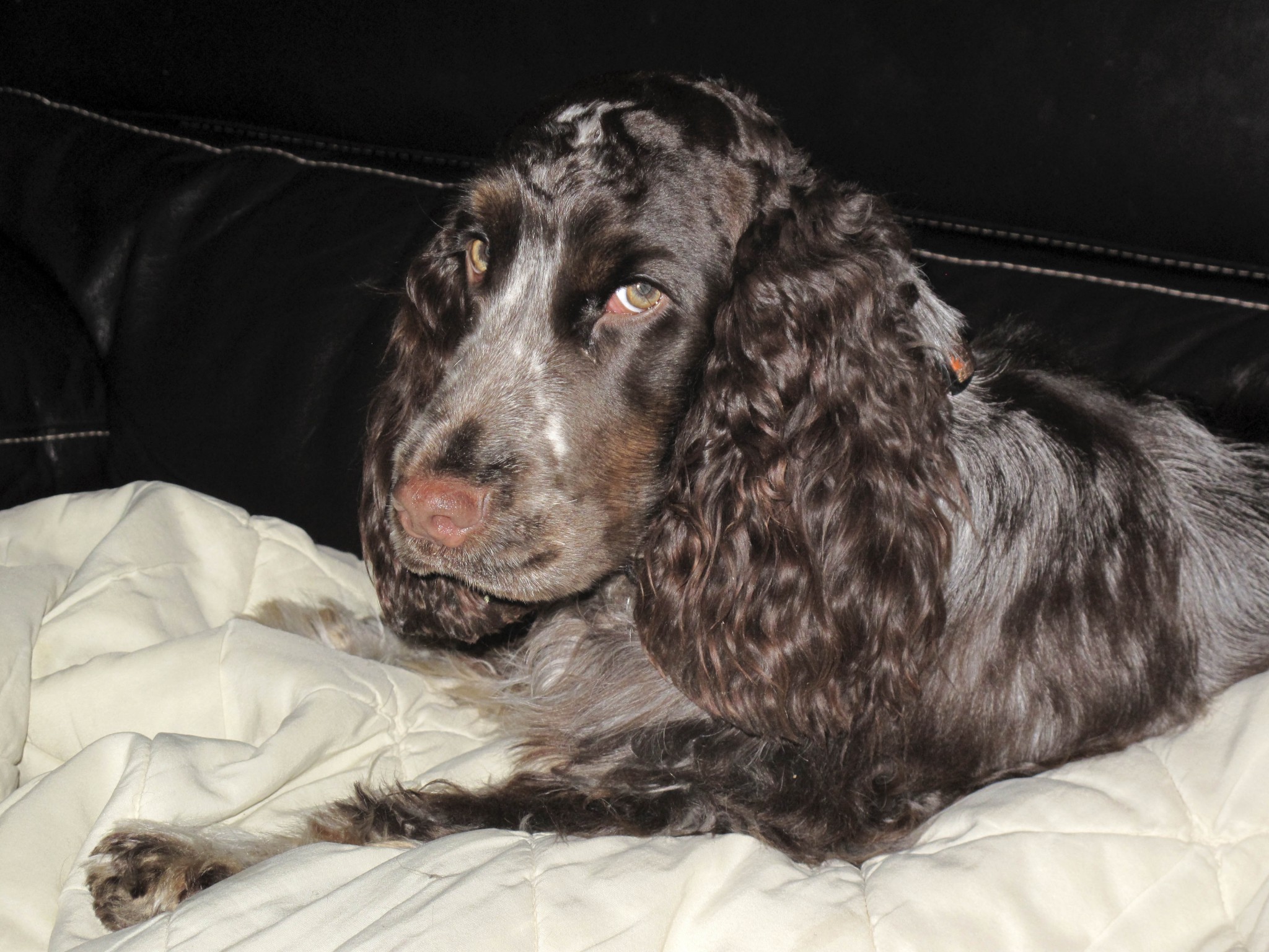 Je vais bientôt avoir quatre ans ! Ma vie avec mes maîtres, la famille et les amis, se déroule harmonieusement, avec câlins, promenades, voyages, au cours desquels je fais l'admiration de beaucoup de personnes : je suis une belle fille .... Mais, j'ai "mes têtes" , certaines ne me plaisent pas et j'aboie .... Un cocker pure souche ....