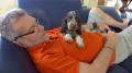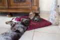Je dors dans mon panier, chaque soir posé dans leur chambre, mais dès 6 heures du matin, je grimpe furtivement sur leur lit , me place entre eux, au-dessus de la couette, et roupille encore un peu jusqu'au moment où ils se lèvent, alors là, je leur fait une fête d'enfer ! J'aime bien moi aussi le moelleux du lit !