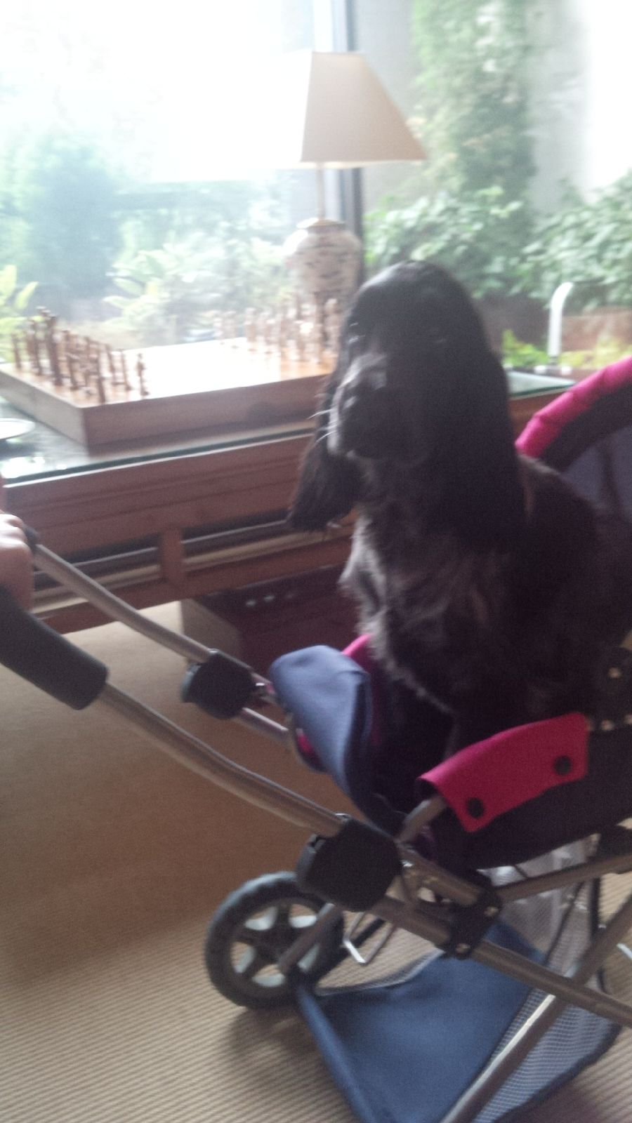 Elle accepte même les promenades dans la poussette, mais là, c'est juste pour la photo. Car sa préférence va aux calins, rien n'est trop agréable, y compris la sieste digestive sur les genoux de sa maîtresse.