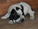 3 chiots : 1 mâle tricolore / 1 mâle noir panaché blanc gris / 1 mâle blanc et noire /